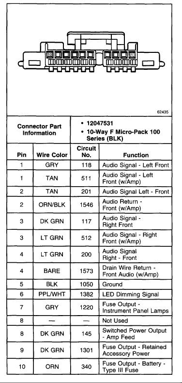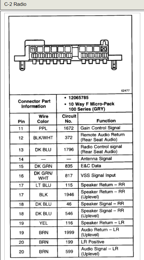 Chevrolet Tahoe LS 2000 stereo wiring connector