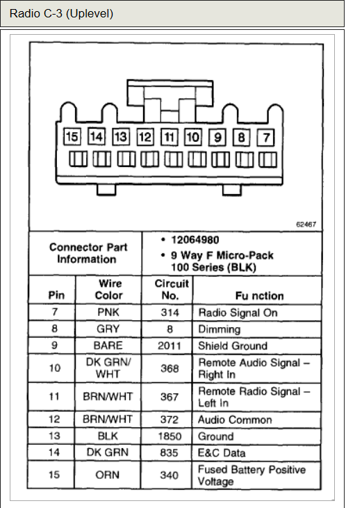 Chevrolet Cobalt 2005 radio C1 wiring connector