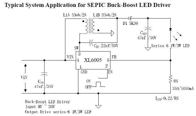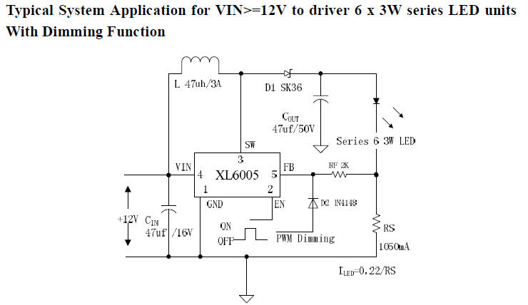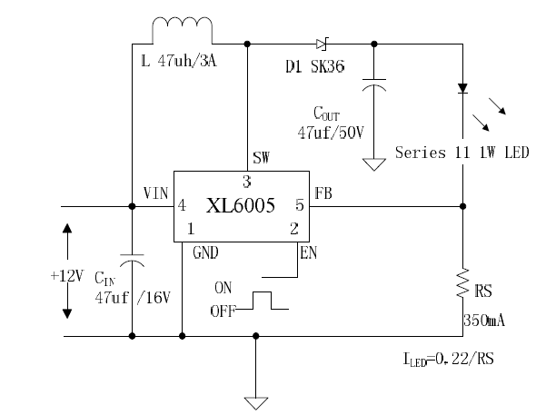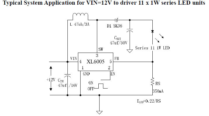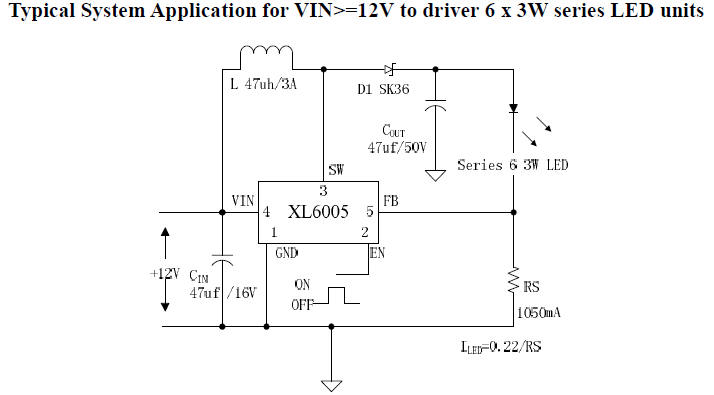 components to work. The XL6005 could directly drive 11 Series 1W LED