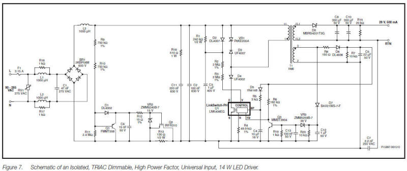 14 W TRIAC Dimmable High Power Factor LED Driver circuit diagram