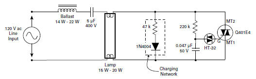 The circuits illustrated in Figure use 15 W to 20 W lamps.