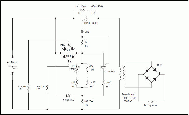 Potentiometer P2 is used for accurate control of the maximum turn-on
