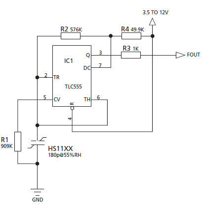 Application circuit for Humidity meter sensor SMTHS10 DC