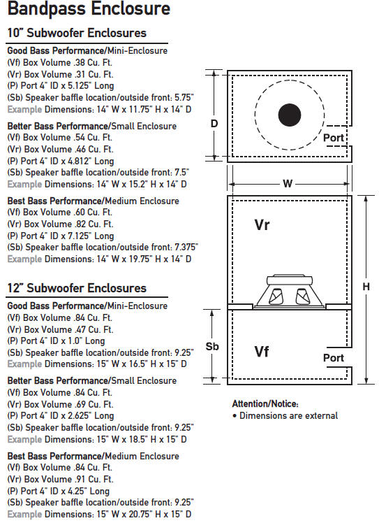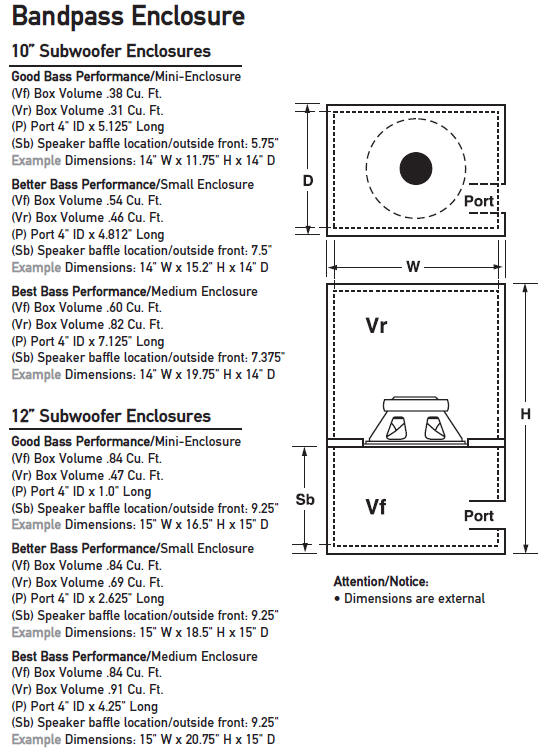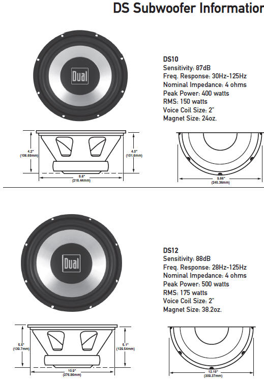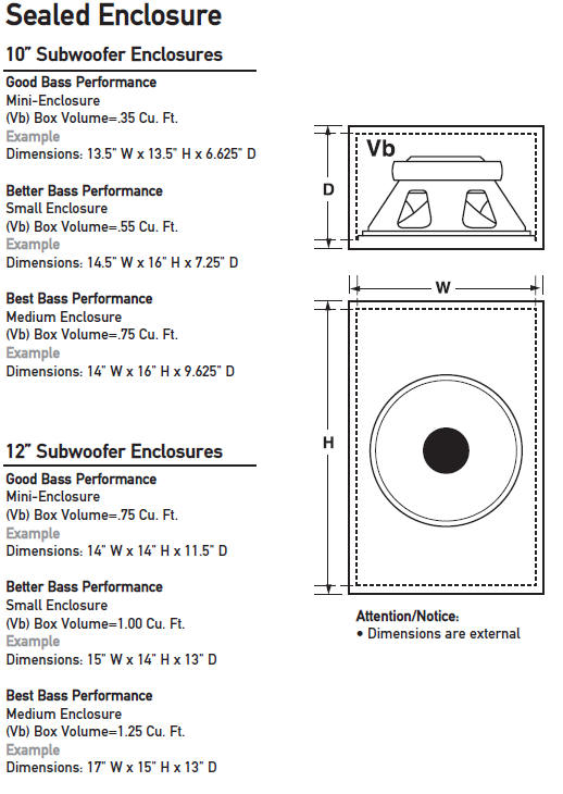 Sealed car audio subwoofer enclosure box Dual XS10, DS10, DS12
