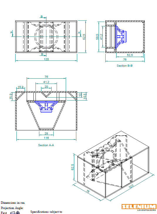 Selenium Subwoofer box folded horn with 18SW1P or 18SW2P subwoofer or