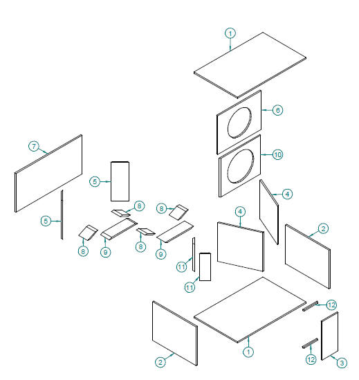WPU1805 or WPU1807 woofer (1 piece). Is a folded horn that features