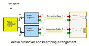 zvučnička kabela) ili biamping (preko dva pojačala). Također postoji i