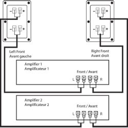 treba spojiti na dva para kabela iz istog pojačala. Jedan par se spaja na