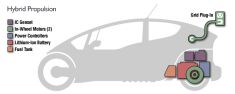 To je hibridno vozilo koje se sastoji od malog motora s unutarnjim sagorijevanjem spojenim na generator od 20kW, dva električna motora u kotačima od 25kW, rezervarom za gorivo od 15 litara i Li-Ion baterija kapaciteta od 3kWh. Sustav može akumulirati energiju koja se stvara kod kočenja. Domet je oko 500 km.